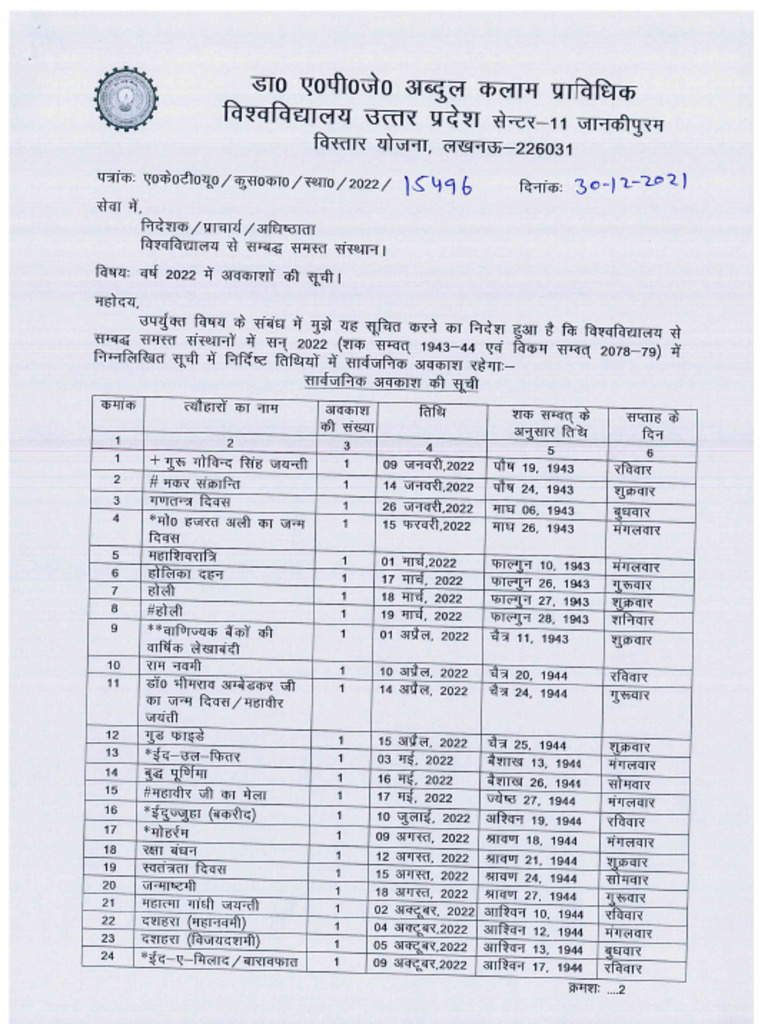 AKTU Academic Calendar 2021-22 – B.tech – Studocu